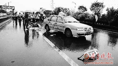 据摩托车司机介绍,他在事发路段正常行驶时,跟前面的出租车相距5米,突然出租车毫无预兆地急刹车,由于路面湿滑,他虽然立即刹车但仍未能避免车祸的发生,直接撞到了出租车尾部右侧。