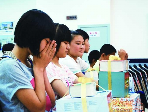 7月19日上午,由本报和安利公司共同举办的“2011暑期圆梦行动”将最后一批圆梦物品发放到13个孩子手中,一名孩子感动落泪。至此,该活动圆满结束。该活动从6月22日开始以来,共帮助40名孩子实现了心中的梦想。活动有终点,但爱的延续没有终点,希望能有更多的爱心市民关注这些贫困儿童。    本报记者 张照朋 彭彦伟 摄影报道