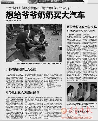本报7月19日讯(记者 彭彦伟) 19日,随着最后一批圆梦物品送到13个孩子手中,本报和安利公司联合举办的2011暑期圆梦行动落下帷幕,本次活动共帮助40名孩子实现了梦想。