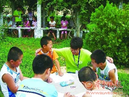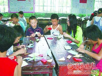 第一次接触这些小朋友时,我感觉他们是如此的羞涩与腼腆也许是因为缺少自信心,他们基本上没有主动发言的,观察到这一点,我们就想办法提高他们的自信心。同时鼓励他们积极发言,指引他们勇敢地在众人面前表现自己、表达自己的想法,来提高他们的语言表达能力。还有,我们以丰富多彩的形式组织各种活动,其中包括各种提高思维敏捷度、增强团队合作意识的游戏,简单手语和手语歌的教授,手工制作等等,并且进行积极的鼓励来提高其自信心。相处几天后,有的同学而开始主动发言,话也比以前多了,还主动跟我们聊天,有的也可以在众人面前表现自己了。