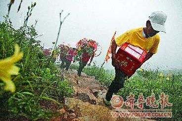 7月19日清晨5点,记者乘坐的大巴车行驶在田间的水泥路上,淅淅沥沥的小雨落在车后,车窗外的天台山迷蒙在晨雾之中。天台山越来越清晰,攒动的人影也出现在眼前。参加2011年太阳节祀日大典的人们打破了往日宁静。