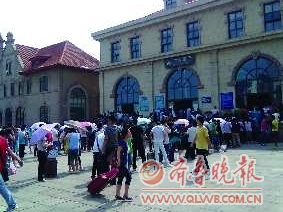 19日,市区新增65家动车票代售点4天后,火车站广场买票长龙消失不见(右图)。而此前,由于市区实名制代售点仅24家,很难起到分流作用,火车站广场购票长龙屡见不鲜(左图)。 本报记者 赵波 本报见习记者 黄兴德 摄影报道
