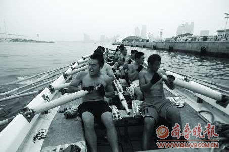 19日,在奥帆基地附近海域,海军潜艇学院的舢板队员们正在加紧备战24日的“2011中国青岛国际海洋节”海上舢板比赛。据介绍,2011中国青岛国际海洋节将于7月23日至8月9日在青岛奥林匹克帆船中心及周边海域举办。另据了解,本届海洋节将设置海洋文化、海洋体育、海军展示、海洋科技、海洋创意和海上旅游六大板块30余项活动。