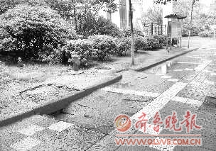 7月19日,记者途经市区文化路的实验幼儿园时,发现幼儿园门口人行道上有一处深约十多厘米的塌陷。请 相关部门尽快修补,以免影响行人正常通行。