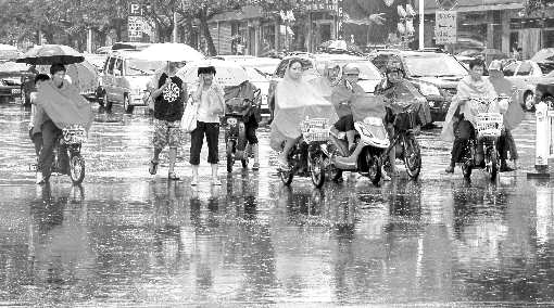 7月19日,临沂市区普降小到中雨。过往的市民或披着五颜六色的雨披骑行,或撑伞在雨中前行,地面上的雨水形成了一面镜子,五彩缤纷的倒影,交相辉映,煞是好看。