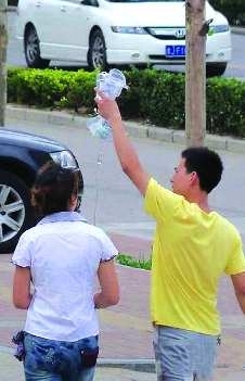 作品描述:一对男女手持吊瓶走过马路,真是点滴之情啊。