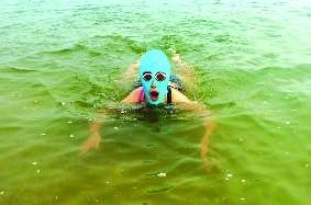 作品描述:这位游泳爱好者头戴遮阳面具投身大海,真是有意思。