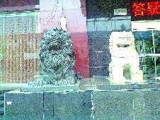 作品描述:一家银行门口有两只风格迥异的石狮,一只充满东方特色,一只是典型的西方风格。