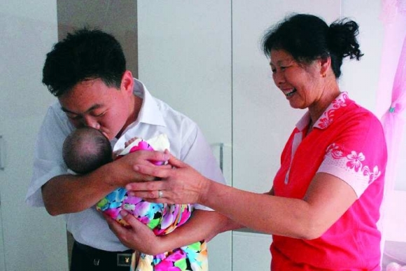 19日,赴新疆喀什疏勒县支教的11名教师抵达东营,来自各县区教育局及市直学校的领导亲自到东营市教育局接老师们“回家”。3月末,前去支教的宫辉还是一名准爸爸,当他完成支教任务回到东营时,差点错过孩子的满月。回到家,宫辉放下包顾顾不上换鞋就跑到了卧室,从母亲手里接过孩子亲了又亲。 本报记者 郑美芹 摄 (详见B02 综合)