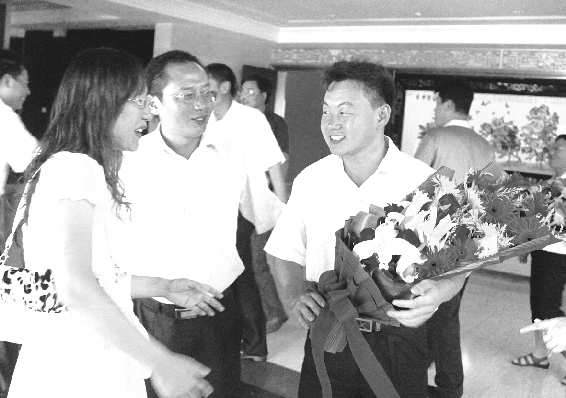 宫辉老师一见到实验学校的领导特别激动,初中部的刘庆川主任和他紧紧相拥。见面后不久宫辉老师就被接回了实验学校,学校领导为宫老师单独举行了小型的欢迎仪式。在仪式上,赵校长说:“欢迎宫辉回家,一见到宫辉,我很激动,我每天都会到校园网站上看他写的支教随笔,我们下一步将与宫辉支教的八一中学建立长期友好往来的关系,也从宫辉开始拉开交流的序幕。”