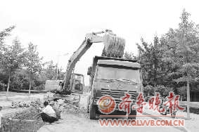 7月18日,在滨州学院院内,施工队正在进行供暖管道