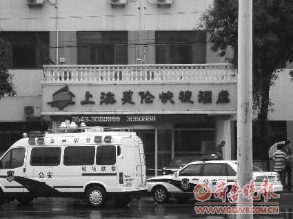 ▲19日中午,警方正在事发酒店内进行调查,现场已被警方封锁。 记者 张卫建 摄