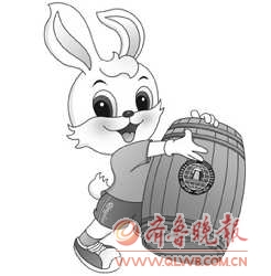 7月20日,第二十一届青岛国际啤酒节吉祥物———俏皮乖巧的兔子“朵朵”亮相。“朵朵”一身运动服打扮,穿着青绿色上衣和淡紫色小短裤,抱着一个啤酒桶,带领大家进入啤酒节的欢快盛景。
