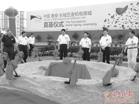 7月19日,由杭州长城实业有限公司、山东永发投资有限公司和山东华纳实业联合投资建设的泰安长城五金机电商城举行了开工奠基仪式。该项目将采用国际级标准规划设计,以“国际化、现代化、综合化、智能化”的建设要求,集“厂商办公、产品展示、仓库物流、产品批发、网上交易、生活配套”六位于一体,以五金机电为龙头行业的超大型商贸采购基地。同时结合泰安市旅游区位优势和商业特点,引进国内外成功运作的新一代商业模式,专业化、规模化、集团化管理,立足山东,辐射周边省市。该项目的启动,预示着华东地区最大的“航母式”五金机电采购基地落地山东。(汪思兴)