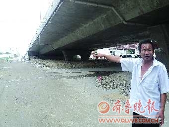 19日上午,记者来到南苑社区,看到该小区约10排住宅楼分布在运河路高架桥下的北湖路两侧。路面上是一些石子和水泥石灰的混合物,每当有车辆路过时,掀起阵阵灰土。高架桥下的土面比路面高出20多厘米。向北约500米的高架桥下,则有一堆建筑垃圾。