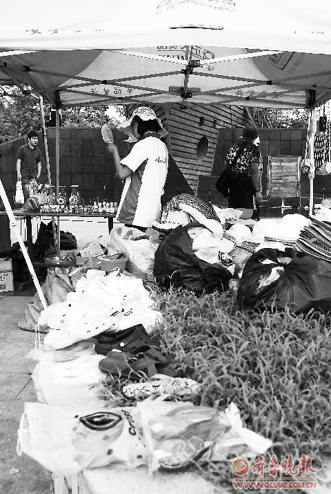 7月20日,在世帆赛基地内,不少旅游纪念品摊主将商品排放到花坛上,有的商品直接放到草丛里面。这种不规范的经营方式影响了景区旅游风貌。管理部门表示将加强管理,规范经营环境。