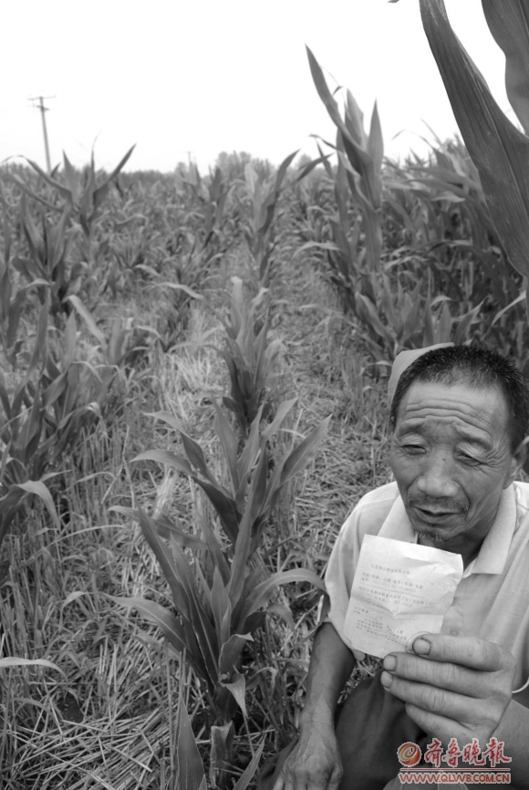 宋广民说,种了这么多年地,他还没遇到过此类情况。今年的玉米种是侄子从泰安种子大厦购买的,其邻居大多用的是肥城的种子,宋广民怀疑可能是种子的问题。“我独身一人,视力也很不好,种的时候都是一个人一粒粒数着种的,今年全指望这两亩地了。”宋广民看着地里的庄稼无奈地说。村民路法明说,看现在的情况,这两亩地最多打百十斤玉米,几乎要绝产。其他相邻村民的玉米苗,则几乎没有这种情况。“我觉得就是种子质量有问题。”宋广民肯定地说。