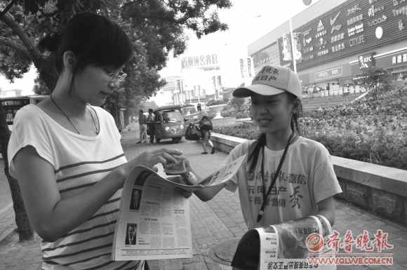一名报童正在售卖报纸。本报见习记者赵苏炜 摄
