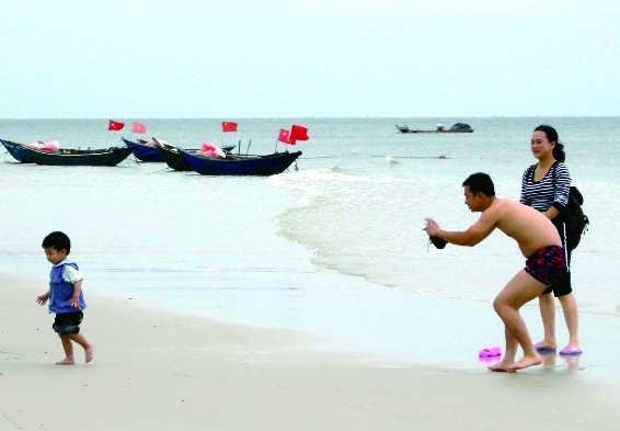 作品描述:一家三口在海边玩,父亲想给儿子拍照,可儿子只顾自己玩,拒不合作。