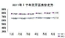 芝罘区上半年房价波动较大,尤其是在2月份,出现了均价130元每平方米的下降,环比增长-1.6%。过后房价一直呈上涨趋势,但是3月份的房价仍未达到1月份的平均房价。最高环比涨幅出现在4月份,环比增长2.67%。之后,芝罘区的房价趋于平缓,每月涨幅不超过1%。6月份房价达到8040元每平方米,较1月份上涨3.34%。
