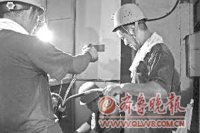 7月20日上午10时左右,渤海七路黄河二路附近大观园—家用户的变压器出现故障,导致附近几家商店和—银行断电,市供电公司迅速组织工作人员进行全面抢修。 见习记者 李运恒 张雪丽 摄影报道