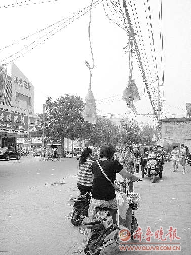 本报6330000热线消息(记者 周千清) 有的路边垂下的电线头和插板距地面仅一两米的距离,让人看了心惊胆战。近日不断有市民向本报反映,菏泽城区一些路段路边垂下的线头和插板让人担忧,但却无人监管。