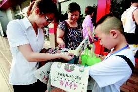 20日起,参加本报暑期营销秀的120余名小选手正式上街体验卖报,锻炼意志和品质。看!小选手刘汝宁开张了。
