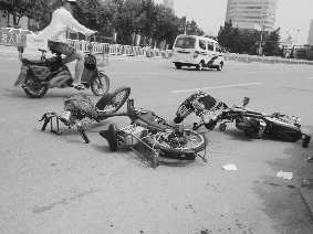 下午3点左右,双方当事人的家人和朋友赶过来,将倒在路边的电动车推到了医院。