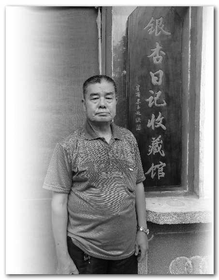 来到在管炳圣的家里,一进门就看到皇甫束玉题写的“银杏日记收藏馆”的匾额,不大的屋子,满满当当的藏书,都是关于日记的书籍,管炳圣说,日记是一笔难以言喻的财富。