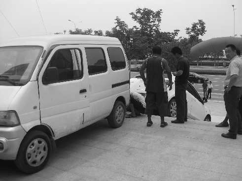 一个小时后,车主的朋友开来一辆面包车将车拖上来(图2)。