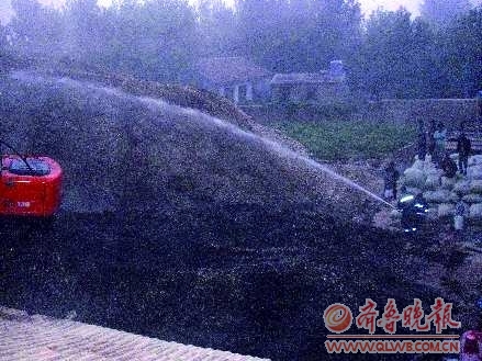 “由于玉米芯干燥,表面明火熄灭,里面却依然阴燃着,不时有火苗闪现。”消防官兵说,为了确保火苗不再燃起,特地让加工厂老板找来挖掘机对现场的玉米芯进行翻动,然后再进行喷水。半小时后挖掘机到场,消防官兵用一支水枪在地面上控制火苗蔓延,另外一支水枪瞄着挖掘机翻动的方向进行灭火。由于扑救及时,火势很快被控制,加工厂的损失也被降到了最低。