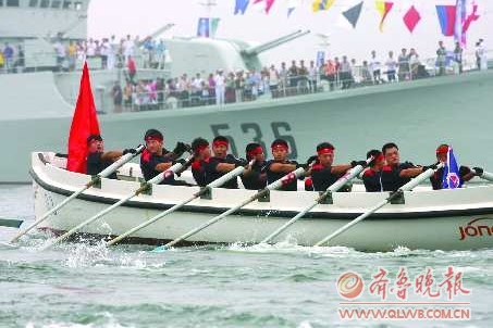 24日下午3点半,七家驻青高校代表参与的海洋节舢板大赛在浮山湾举行。最终,海军航空工程学院夺得冠军,卫冕成功,同时获得了10万元奖励,第二名是海军潜艇学院。