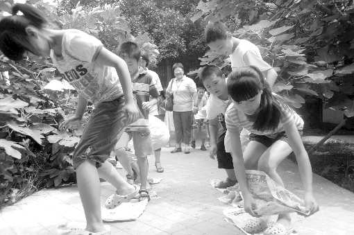 在课间活动时,18个孩子每3个组成一队,用报纸做道具,玩“过河”游戏比赛。本来互不认识的他们,在比赛中渐渐熟悉起来,孩子们的欢声笑语不断响彻在少儿图书馆的上空。