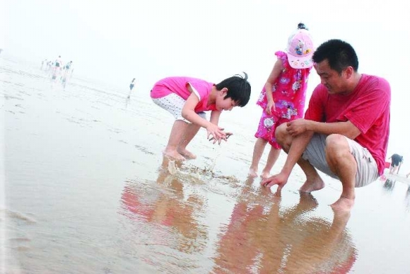 24日上午,在垦利红光渔港举行的第三届赶海拾贝旅游节上,四岁的甜甜正与爸爸、妹妹一起挖贝壳。“中国垦利红光第三届赶海拾贝旅游节”由垦利县人民政府、东营市现代渔业示范区管理委员会、垦利县人民政府红光渔业办事处、垦利县旅游局和垦利县海洋与渔业局共同主办,将持续到10月7日。