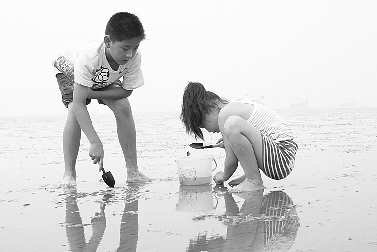 “爸爸,我挖到一个大的!”四岁的甜甜跟随爸爸来挖贝壳,刚下手就挖到一个,不禁兴奋地大喊起来。垦利县的市民王女士带着儿子和侄子趁暑假也来赶海拾贝,“这是我们第一次来挖贝壳,刚开始还真是无从下手,有人告诉我们看泥沙颜色,有人说看泥沙上的小洞,可是大多数都做了无用功。”王女士说,他们咨询了渔船上的渔民,慢慢掌握了挖贝壳的技巧,一会儿就挖到了小半袋儿。赶海拾贝节还吸引了许多摄影爱好者随同拍照。