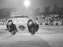 在近日举行的“中外巅峰对决,再战漂移入位”中,临沂正直驾校特技队员张华最终以24厘米的成绩,成功创造了“前后距离最窄的汽车漂移入位”一项最新世界吉尼斯纪录。图为特技队员表演两轮行驶。