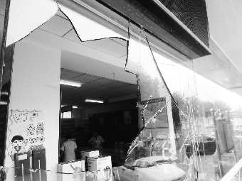 23日上午,记者来到位于市区沂蒙路与红旗路交会处的国大仁和堂药房,门口靠南的两扇玻璃门被砸碎大半,另外一扇玻璃也被砸坏,地上还散落着砖头、啤酒瓶碎碴等。