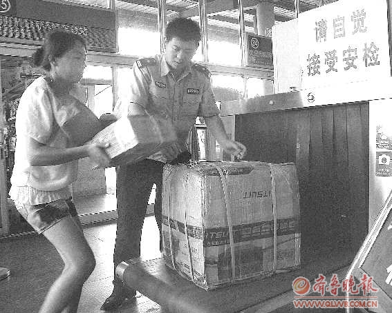 24日,记者在汽车总站看到,车站设有3台安检机,对车站物流及旅客携带的行李,件件过机、逢包必检。