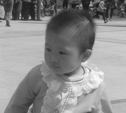 光看照片,谁能看出我是男孩还是女孩?我经常被误认为男孩,妈妈只好一次又一次地跟大家介绍,我是个漂亮的小姑娘。真不好意思,因为我太胖了怕热,不得不剃个光头,真羡慕别的小女孩可以扎小辫。我体重26斤,嘿嘿,是有点超标,可又管不住自己的嘴巴,惭愧啊!
