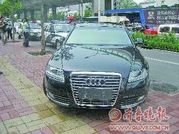 上午8:30左右,一辆无牌奥迪A6轿车停在经十纬一路口西侧等红灯。这辆无牌轿车立即引起了路口执勤交警沈警官的注意,他随即走上前去,请驾驶员出示有关证件。此时,驾车的男子不愿意下车,就将车窗摇下一条缝隙,随后又关上。经多次警告,最后他递出了行驶证。