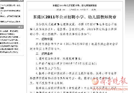 东港区教育局政工科一名不愿透露姓名的负责人在接受记者采访时说,降低招聘老师的年龄是为了优化教师队伍,招聘条件