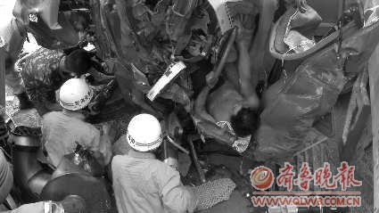 7月24日下午1点半左右,在肥城市孙牛路和泰临路路口,一辆半挂车和一辆翻斗车相撞,一人被困驾驶室。泰安消防支队龙山中队接到报警赶到现场后,经过近20分钟的努力,将被困人员成功救出。