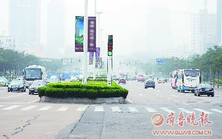 这个路口在北京南路由南向北方向上,存在一个“左拐通行”,且路口车流量非常大,东面有火车站、建陶市场,旁边居民区又多。日照市交警直属大队设施科顾科长说,考虑到该丁字路口的特殊情况,一开始就决定安装一体式指示灯。