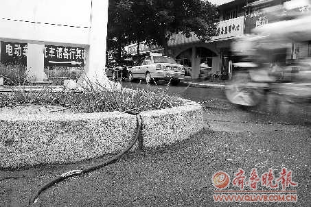 7月25日,德州湖滨大道和三八路路口,一根电线暴露在马路上,部分外皮已经损坏,夏季多雨,如果漏电极易造成安全隐患。