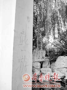在龙泉广场的柱子上、墙上或者石头上,记者看到多处写有“某某到此一游”的字样。市民黄小姐告诉记者:“常常看到有人往墙上写字,这种行为太没公德心了,该有人出来管管了。外地游客来滕州,必去的地方就有龙泉广场,到处乱涂乱画太影响滕州的形象了,希望通过贵报的报道能引起市民的注意。”