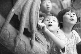 在这次小候鸟参观烟台市博物馆的活动中,当参观秦始皇东巡和阳主展厅时,讲解员号召小朋友一起读展示牌上的文字。记者注意到,当其他孩子开口大声朗读展示牌上所写的对“阳主”的介绍时,11岁的张记者却一直闭口不读。