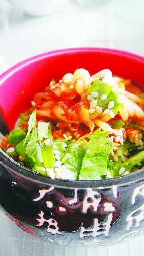手工抻拉的面条呢,再说这面条上面的主料,看起来红红的辣椒但吃到嘴里却是另外一种口感,辣辣的甜甜的,再嘴里嚼两口还觉得有点香香的味道。记者发现几乎每碗面中就会有数颗芝麻,也许正是因为芝麻起到的作用,使面条吃起来都有种香甜的味道夹杂在其中。