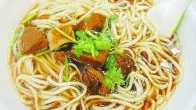 推荐二款面品: 麻辣面:大娘面馆的面种类很多,面条嚼在嘴里韧劲儿十足,要不是事前知道这面使用机器制作的,那记者还真以为是