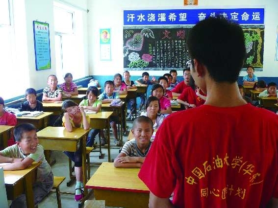 在课堂上,孩子们与大学生志愿者们分享着自己的小梦想。“我要考清华大学。”即将升入初一的李强由于家离学校很近,所以也来听课。李强话音刚落,志愿者王秀芹就提议给李强掌声,希望李强能真正的向着自己的梦想努力。