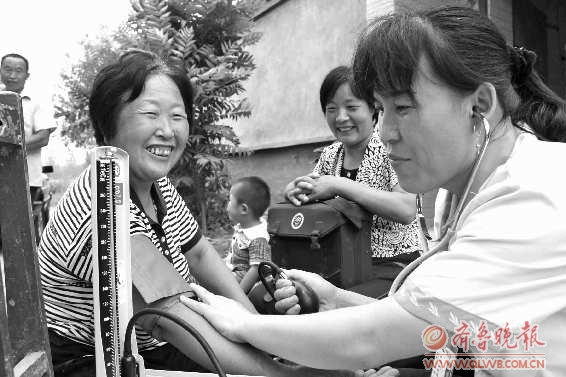 为让农村留守老人健康地度过这个夏天,惠民县组织卫生、计生、防疫等部门开展夏季保健知识进村入户活动,上门为留守老人讲解夏季防暑、食品安全、身体保健等方面知识并现场为群众进行查体等免费服务。图为7月25日,惠民县胡集镇计生服务站的工作人员正在为该镇道口村57岁的留守老人高洪荣(左二)量血压。 通讯员 王美健 段玉娇 见习记者 张雪丽 摄